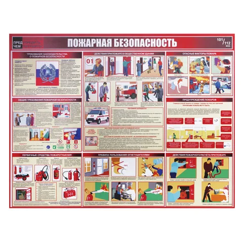 Плакат информационный Пожарная безопасность 91х70см, пластиковая