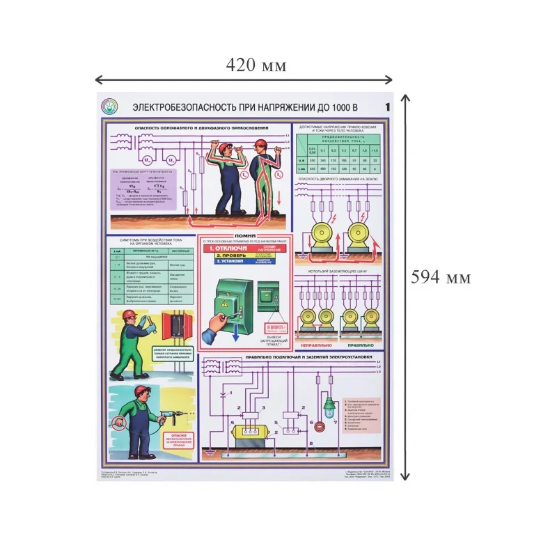 Плакат информационный Гасзнак Электробезопасность до 1000в, бумага