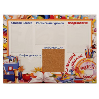 Информационный стенд Attache Классый уголок 950 Стенд 'Классный уголок' предназначен для учеников начальной школы и имеет красочный оригинальный дизайн. Он будет привлекать внимание детей и поможет усвоить важную информацию, такую как расписание уроков, график дежурств и многое другое. Карманы выполнены из прозрачного пластика.