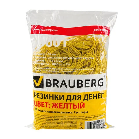 Резинки для денег Brauberg 60х1.5мм, 1кг, желтые, 1800шт