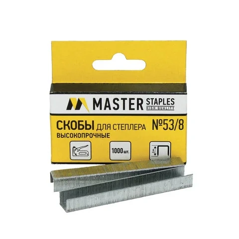 Скобы для степлера мебельного, тип 53, 8 мм, MASTER, ВЫСОКОПРОЧНЫЕ, количество 1000 шт., СМ53-8Б