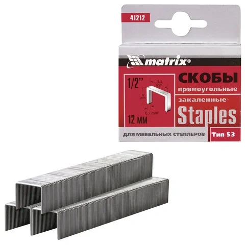 Скобы для мебельного степлера Matrix Master 12мм, тип 53, закаленные, 1000шт/уп