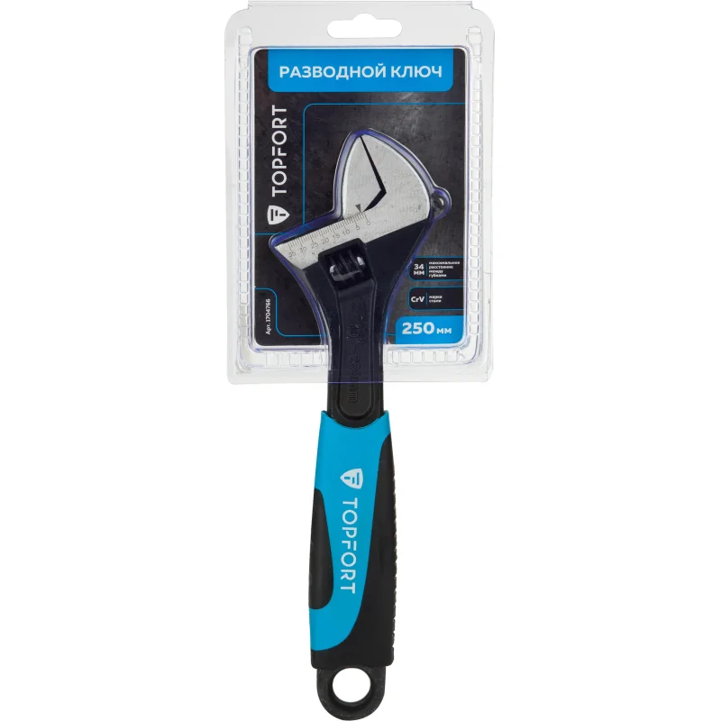 Ключ разводной 250 мм TOPFORT из углеродистой стали, пластиковая ручка