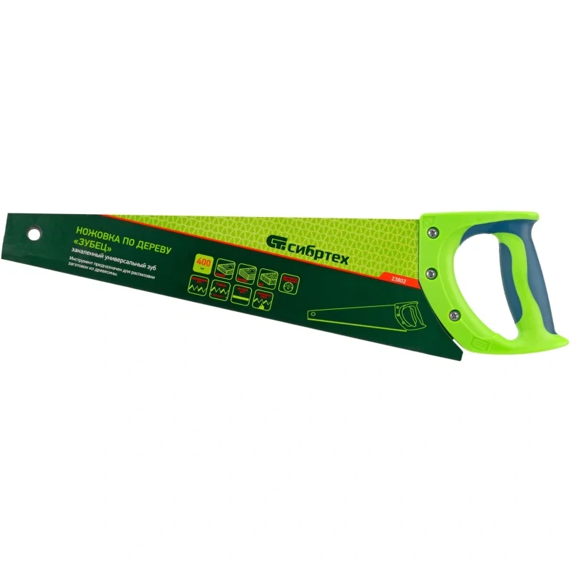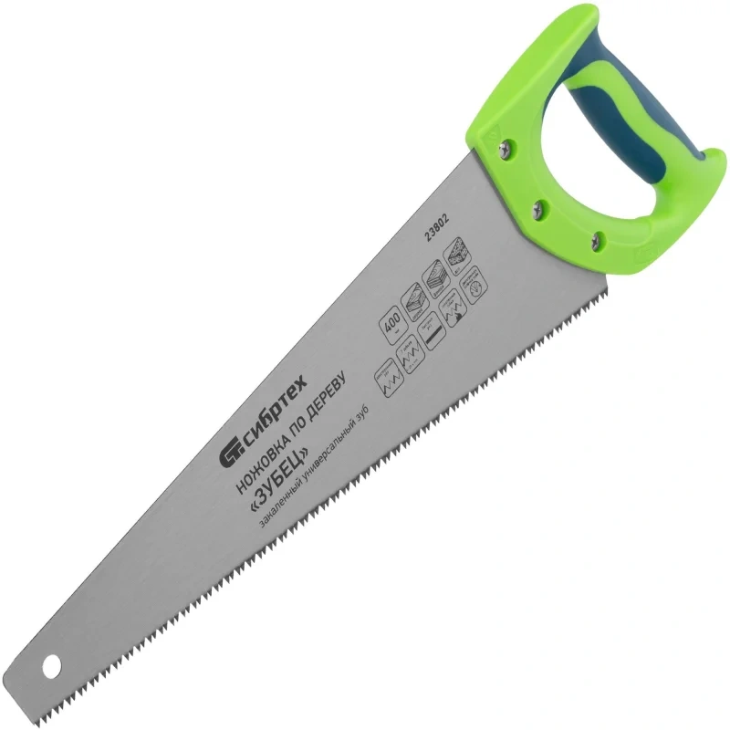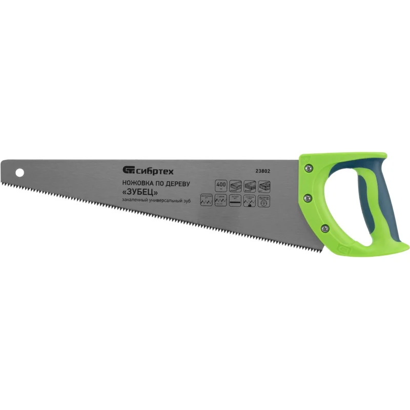 Ножовка по дереву 400 мм 7-8 TPI зуб 2D каленый зуб Сибртех Зубец 23810