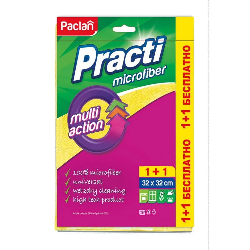 Салфетка хозяйственная Paclan Practi универсальная, 32х32см, микрофибра, 2шт/уп