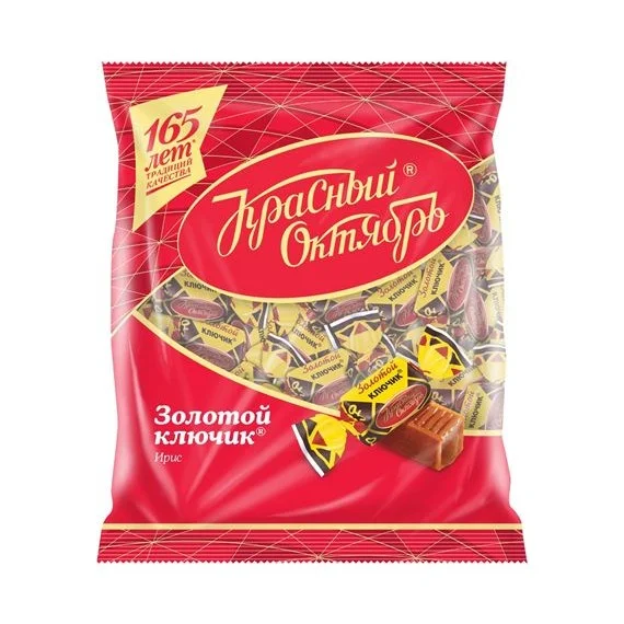 Любимые с детства ириски Золотой Ключик. Всамделишный ирис, который в шутку называют для самых болтливых! Тягучий, ароматный, с насыщенным сливочно-карамельным вкусом вареной сгущенки и сердцевиной чуть более мягкой, чем остальная конфета. Эталон настоящих ирисных конфет: тугие, вязкие и бесследно тающие.