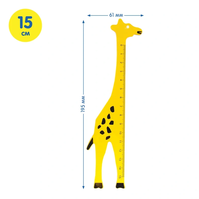 Линейка 15см Мульти-Пульти 'Жираф', пластиковая, прозрачная, желтая, европодвес