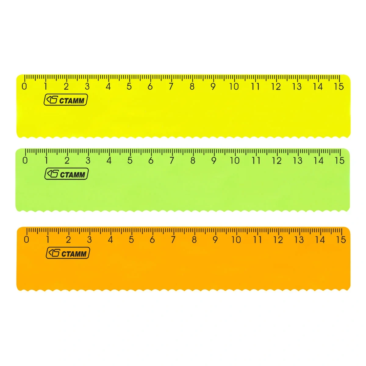 Линейка 15см СТАММ, пластиковая, с волнистым краем, прозрачная, неоновые цвета, ассорти