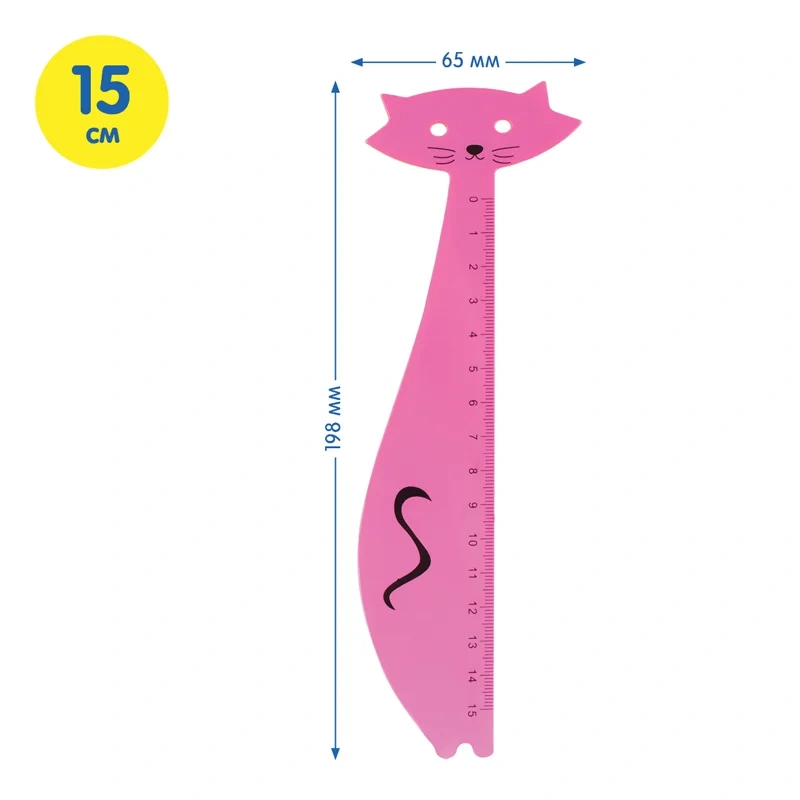 Линейка 15см Мульти-Пульти 'Кошка', пластиковая, прозрачная, розовая европодвес