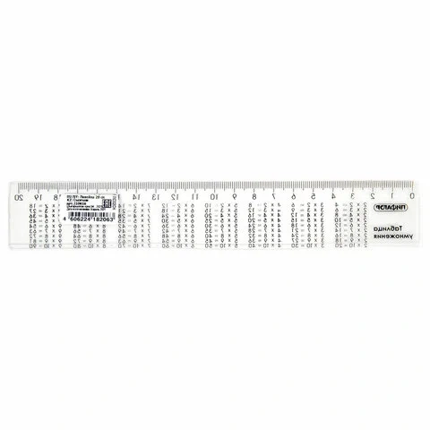 Линейка Пифагор 20см, с таблицей умножения, 210616