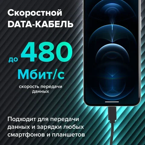 Кабель USB 2.0 Sonnen Economy 1м, для передачи данных и зарядки iPhone/iPad, черный, 513116