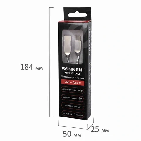 Кабель USB 2.0 Sonnen Premium 1м, передача данных и быстрая зарядка