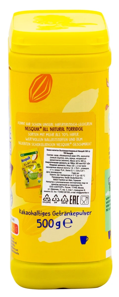 Какао-напиток Nesquik - отличное начало дня! Ведь с ним завтрак веселее! Nesquik делает молоко еще вкуснее и дополняет его пользу витаминами. Витамин D способствует усвоению кальция из молока, а также необходим для крепких и здоровых костей. А витамин С способствует нормальному функционированию иммунной системы, росту и развитию детского организма.Nesquik. Растем весело!
