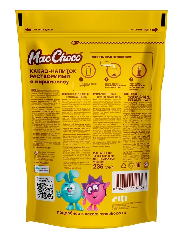 Какао Macchoco Смешарики и Маршмеллоу 235г, пакет