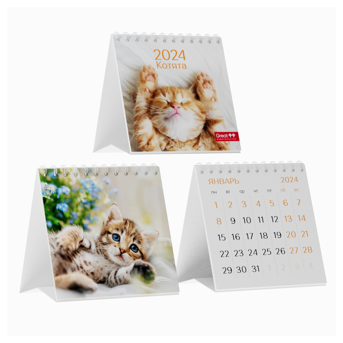 Календарь-домик 101*101мм, Грейт Принт 'Котята', на гребне, 2024г