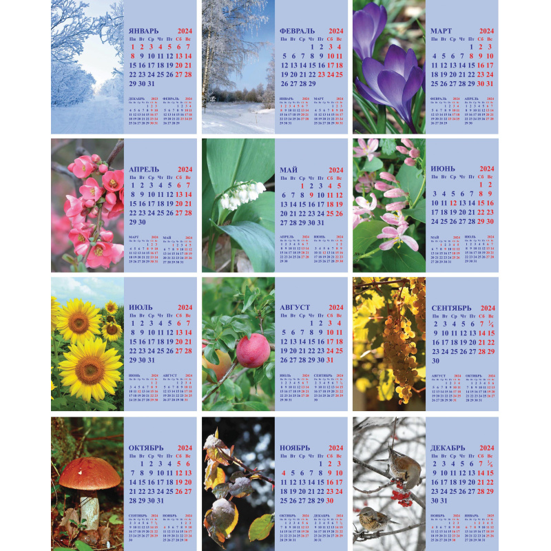 Календарь-домик настольный 2024,120х110, Времена Года,спир,7л.,KD Календарь настольный на 2024 год размером 120x110 мм состоит из: материал блока- мелованная бумага 120 гр., полноцветная печать, 7 листов (1 л. обложка 6 л. блок), подставка-плотный картон 300 г/кв м, полноцветная печать, металлический гребень сверху, индивидуальная упаковка.
