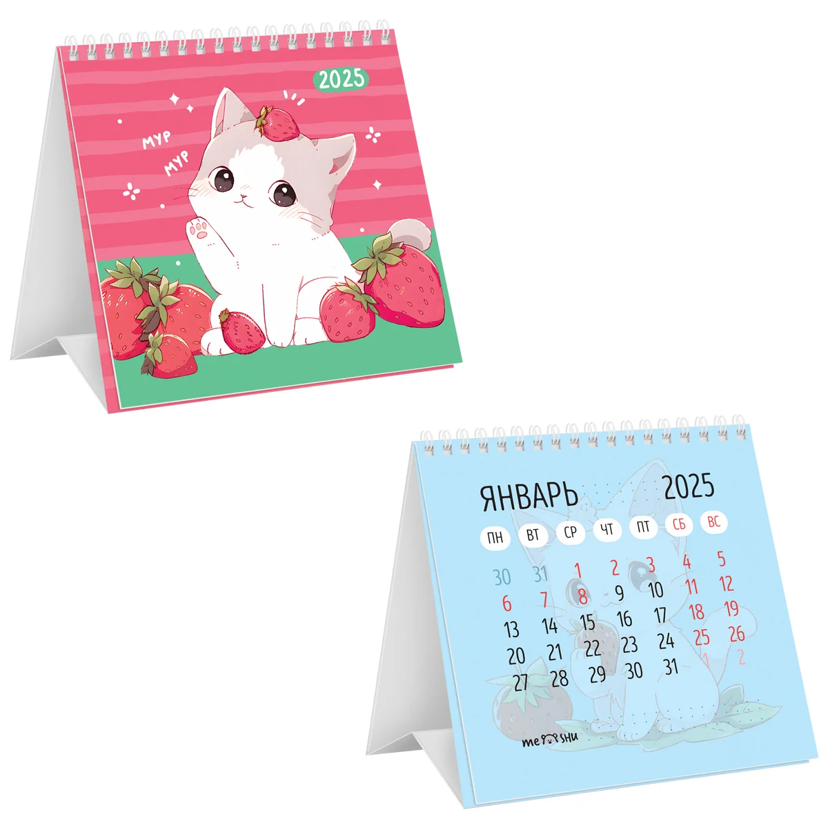 Календарь-домик MESHU 'Strawberry kitty', на гребне, 2025г.