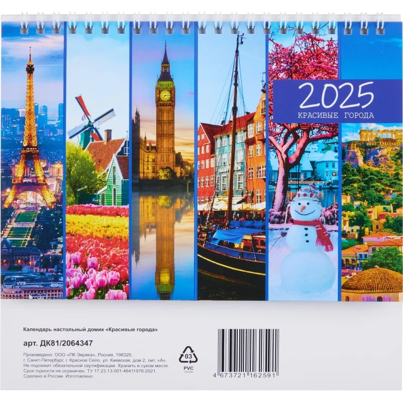 Календарь-домик настольный 2025 Города Мира 210х150мм 150 г/м2