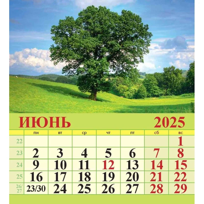 Календарь-домик настольный 2025,Родные просторы,1спир,100х140,0825005 Настольный перекидной календарь-домик на 2025 год на металлическом гребне, формат 100х140 мм. Состоит из подставки (тонированный золотым пантоном мелованный картон плотностью 250 г/кв.м) и семи листов мелованной глянцевой бумаги плотностью 105 г/кв.м, скрепленных металлическим гребнем. Первый лист - красочная обложка, внутренний блок - шесть двусторонних листов со слайдами и календарными сетками на каждый месяц с нумерацией недель.