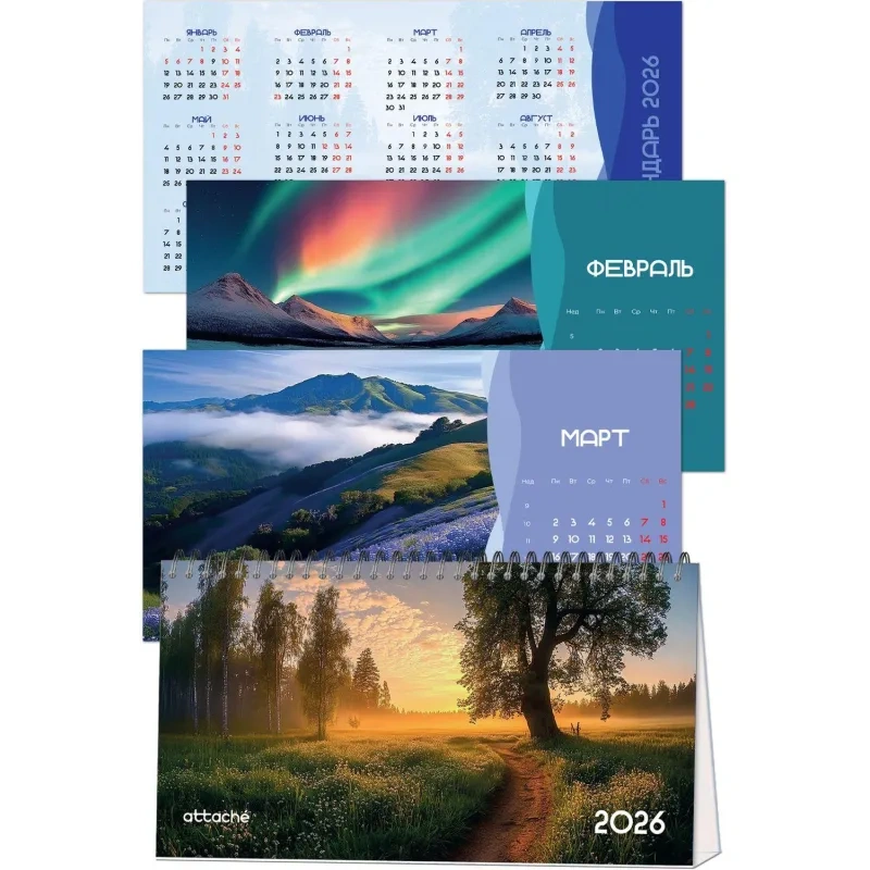 Календарь-домик настольный 2026 Attache, Природа России, 240х130