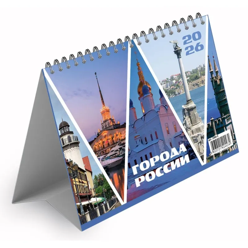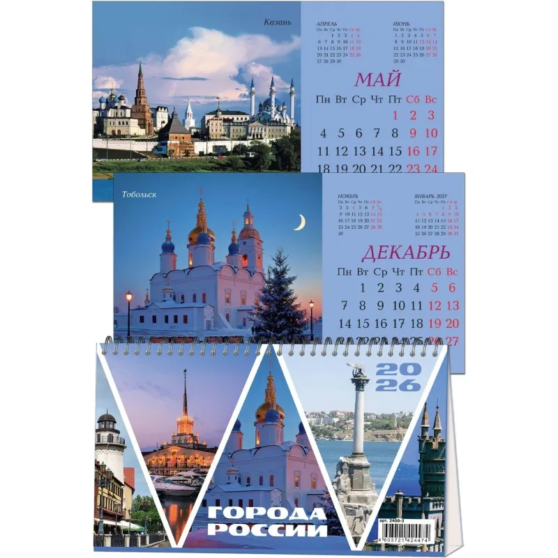 Календарь-домик настольный 2026, Города России,спир,14л,115г,210х120,2400-3