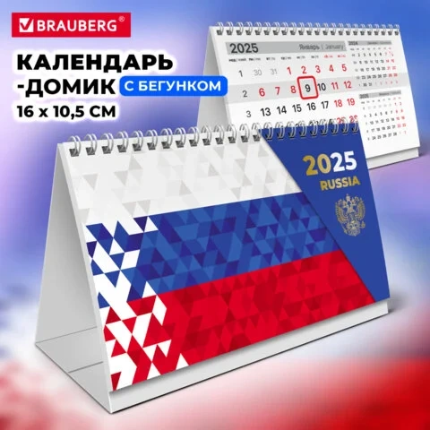 Календарь-домик настольный на гребне с бегунком, 2025г, BRAUBERG, 160х105мм, Символика, 116261