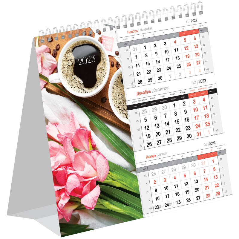 Размер календаря – 190?170 мм. 12 листов. Календарная сетка на 3 месяца.