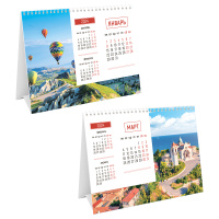 Календарь-домик настольный перекидной OfficeSpace Mono. Landscape на 2024 год – незаменимая вещь в жизни делового человека и отличный помощник для офиса. Размер календаря – 200?130 мм. Календарь имеет подложку с рисунком и 7 листов с календарной сеткой на 3 месяца. Календарный блок изготовлен из офсетной бумаги плотностью 80 г\\м2 с печатью в 2 краски. Нижняя подложка изготовлена из картона плотностью 320 г/м2. Календарь сделан в тематике красоты природы.