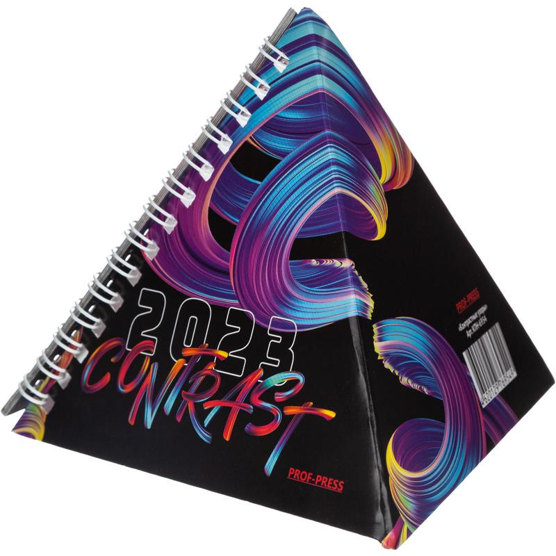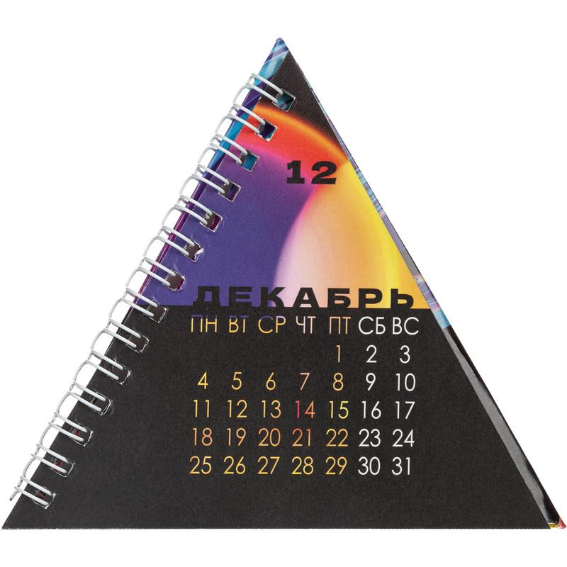 Современный календарь-пирамида необычной конструкции от «Проф-Пресс» станет незаменимым помощником и стильным украшением рабочего стола. Размер 140?140 мм, имеет 6 перекидных листов на гребне, по месяцу с каждой стороны с индивидуальным блоком на каждый месяц. Выполнен в четырех ярких дизайнах. Обложка и блок — целлюлозный картон 200 г/м2.