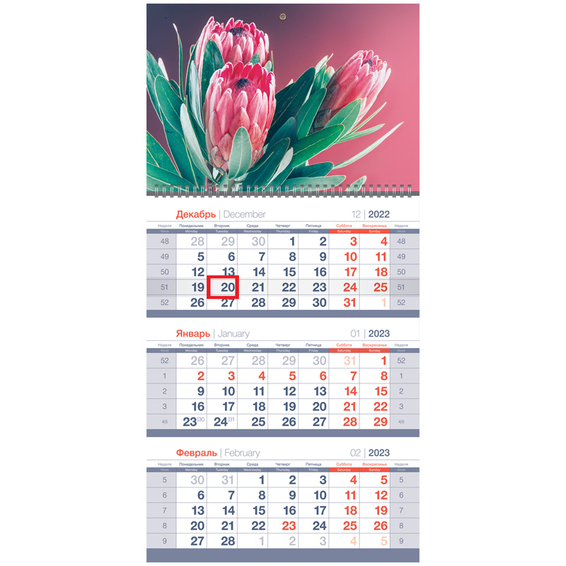 Календарь квартальный 1 бл. на 1 гр. OfficeSpace 'Protea Flowers', с бегунком, 2023г.