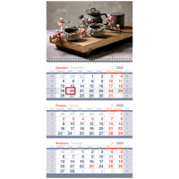 Календарь квартальный 1 бл. на 1 гр. OfficeSpace 'Tea ceremony', с бегунком, 2023г.
