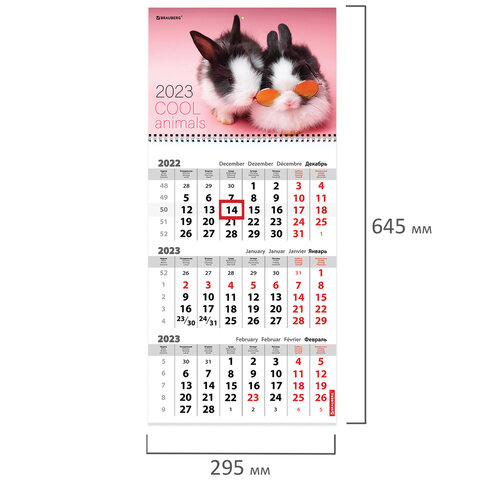 Календарь квартальный Brauberg Cool Bunnies, 3 блока, 1 гребень, с бегунком, 2023