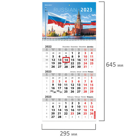 Календарь квартальный Brauberg Красная Площадь, 3 блока, 1 гребень, с бегунком, 2023