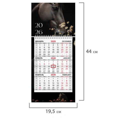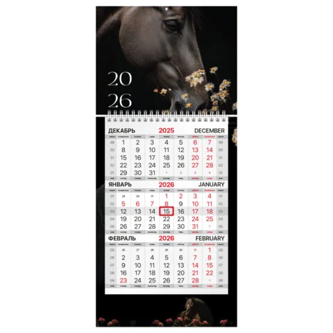 Календарь квартальный 2026 г., 1 блок, 1 гребень, бегунок, МИНИ, офсет, BRAUBERG, 'Символ года', 116