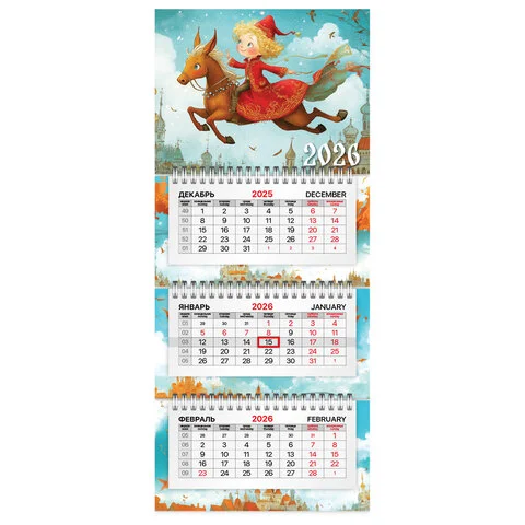 Календарь квартальный 2026 г., 3 блока, 3 гребня, бегунок, мелованная бумага, BRAUBERG EXTRA MINI, '