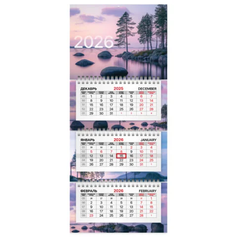 Календарь квартальный 2026 г., 3 блока, 3 гребня, бегунок, мелованная бумага, BRAUBERG EXTRA MINI, '