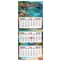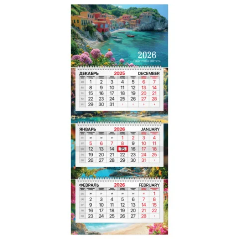 Календарь квартальный 2026 г., 3 блока, 3 гребня, бегунок, мелованная бумага, BRAUBERG PREMIUM, 'Мор
