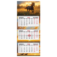 Календарь квартальный 2026 г., 3 блока, 3 гребня, бегунок, мелованная бумага, BRAUBERG PREMIUM, 'Сим