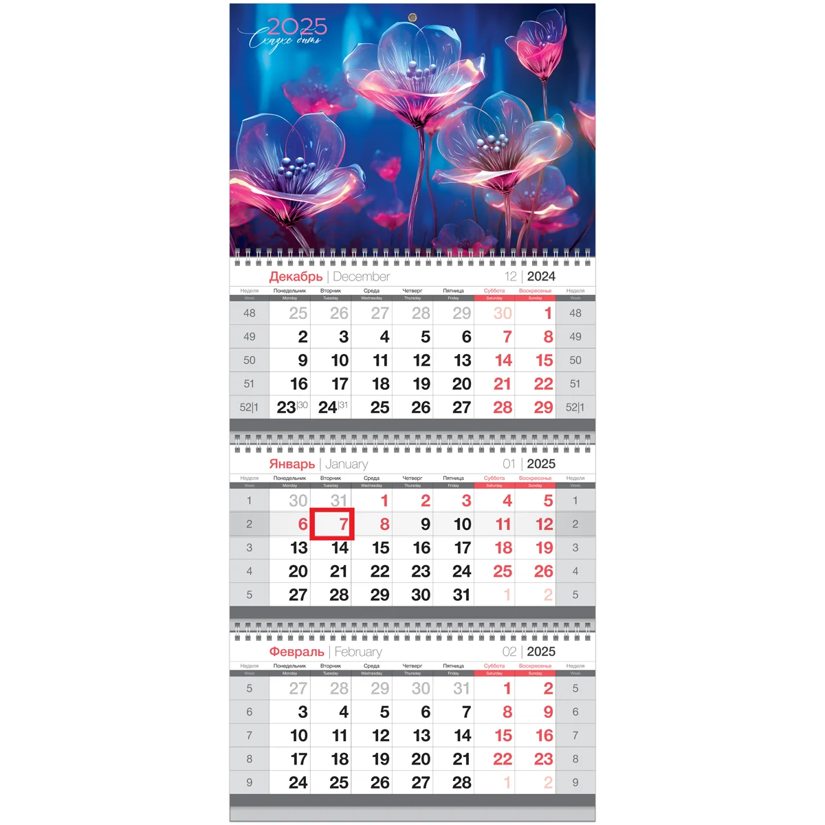 Календарь квартальный 3 бл. на 3 гр. BG 'Магия', с бегунком, 2025г, фольга