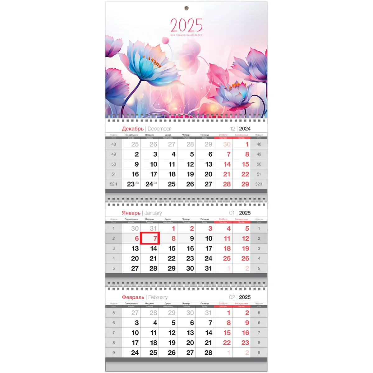 Календарь квартальный BG линейки Mini «Цветы» на 2025 год – незаменимая вещь в жизни делового человека и отличный помощник для офиса, компактного размера 195*445 мм. Ориентация – вертикальная. 3 календарных блока по 12 листов на 3 гребнях изготовлены из офсетной белой бумаги плотностью 80 г/м2 с печатью в 2 краски. Подложка изготовлена из чистоцеллюлозного мелованного картона 320 г/м2. Нижняя имеет цветность в 1 краску, верхняя – полноцветная. Есть удобный бегунок-курсор и пикколо для подвески.