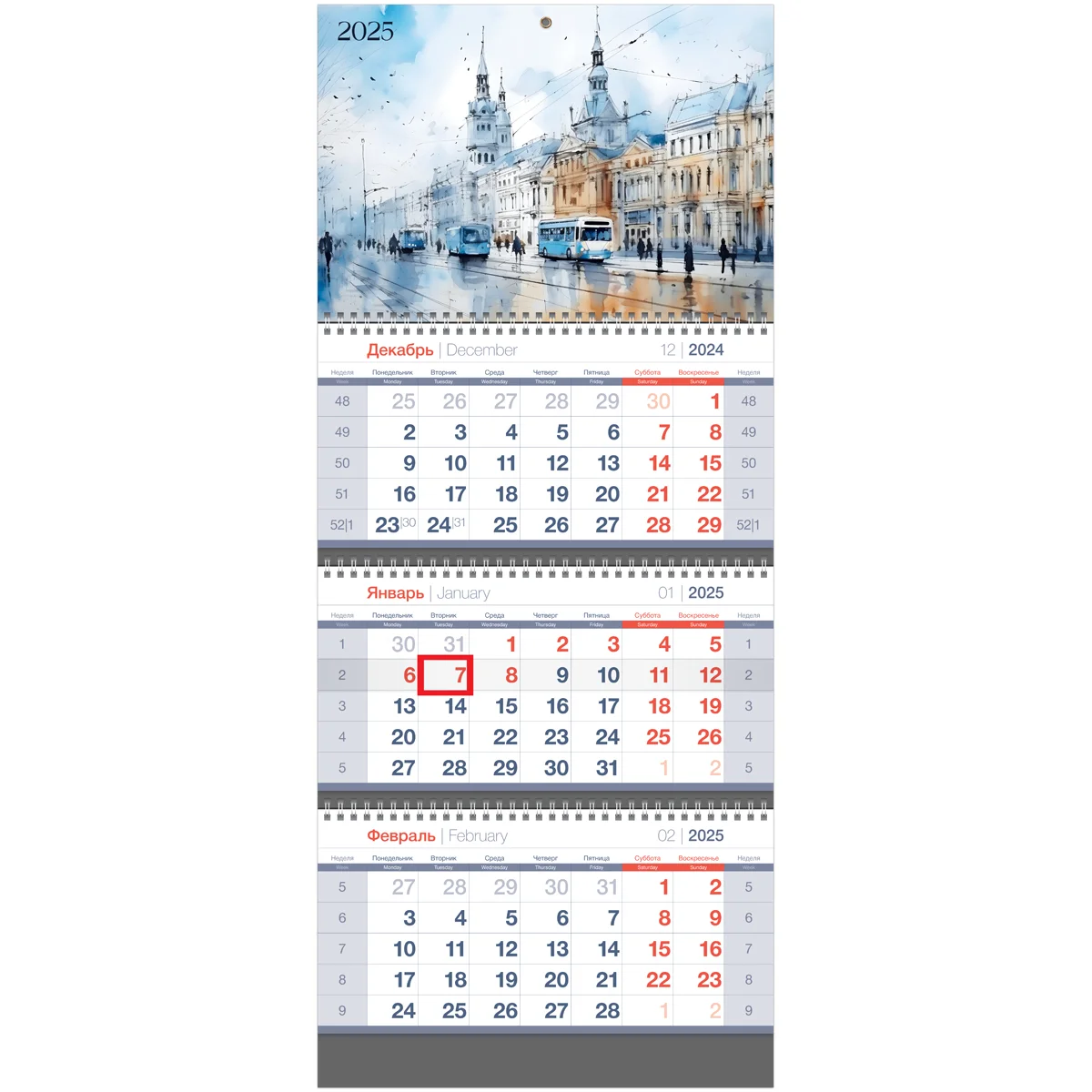 Календарь квартальный BG линейки Standard «Городская тишина» на 2025 год – незаменимая вещь в жизни делового человека и отличный помощник для офиса. Размер вертикального календаря – 295*700 мм. 3 календарных блока по 12 листов на 3 гребнях изготовлены из мелованной белой бумаги плотностью 90 г/м2 с печатью в 2 краски. Подложка изготовлена из чистоцеллюлозного мелованного картона 320 г/м2. Нижняя имеет цветность в 1 краску, верхняя – полноцветная. Есть удобный бегунок-курсор и пикколо для подвески.