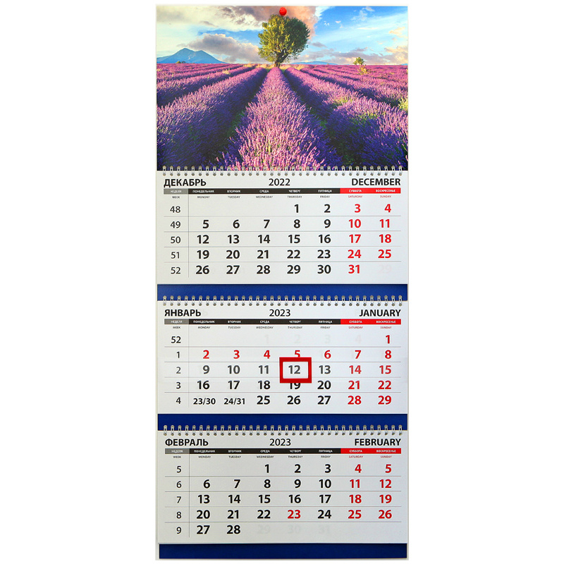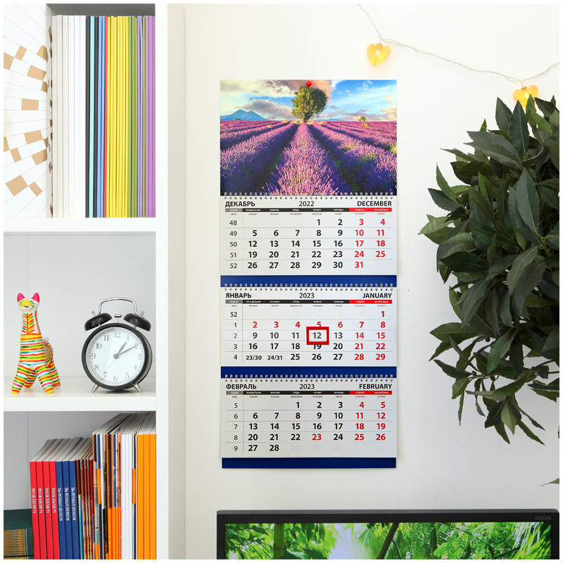 Календарь квартальный 3 бл. на 3 гр. на подложке Грейт Принт 'Трио' - Прованс, с бегунком, 2023г
