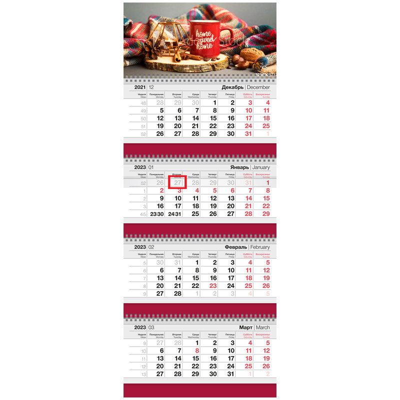Размер календаря – 295?755 мм.