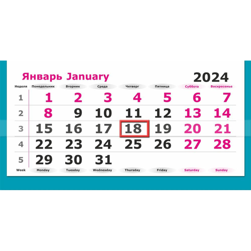 Календарь настенный 3-х блочный 2024, 305х780, Белый медведь, 3 спир,80г/м2 Календарь настенный 3-х блочный 2024 год Белый медведь размером 305x780 мм состоит из красочного постера и трех блоков на подложках голубого цвета. Постер изготовлен из плотного мелованного картона, оснащен люверсом (металлическим кольцом) для подвешивания. Каждый блок имеет размер 290x140 мм, включает 12 листов офсетной бумаги плотностью 80 г/кв. м, закрепленных на металлическом гребне. Печать на блоках выполнена красками двух цветов. Текущую дату удобно выделять с помощью курсора в виде прямоугольного окошка, которое свободно перемещается на пластиковой направляющей. Календарь поставляется в индивидуальной упаковке.