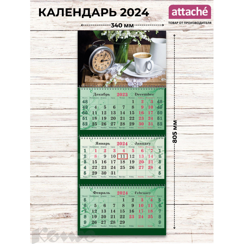 Календарь квартальный Attache Супер-Премиум Время кофе, 3 блока, 340х805мм, 2024