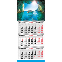 Календарь настенный 3-х блочный Трио Стандарт,2024,295х710,Морск путеш К905 Большой настенный квартальный календарь 295x710 мм с изображением природы 'Морское путешествие' - многофункциональный помощник на 2024 год для дома и офиса. Красочный лакированный постер 295x220 мм. Календарная сетка состоит из трех блоков, напечатанных на белой офсетной бумаге. Скреплены тремя металлическими гребнями. В конструкции календаря предусмотрено отверстие для крепления на стене - металлический люверс. Передвижной бегунок (курсор) используется для выделения текущей даты. Выходные и праздничные дни выделены красным цветом. Каждый календарь поставляется в индивидуальной упаковке.