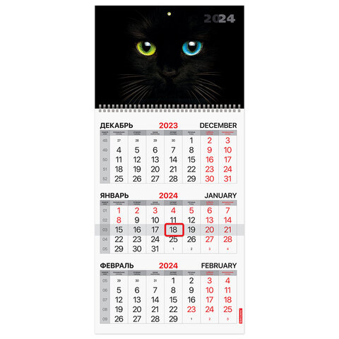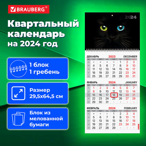 Календарь квартальный Brauberg Cat's eyes, 1 блок, 1 гребень, магнитный курсор, 2024