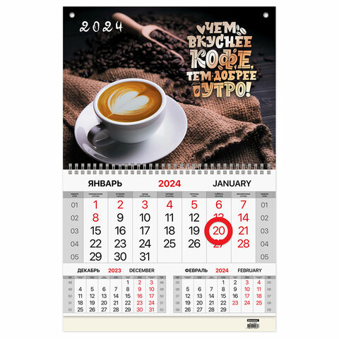 Календарь квартальный Brauberg Coffee, 1 блок, 1 гребень, магнитный курсор, 2024