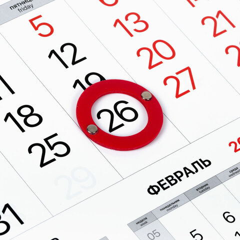 Магнитный курсор-бегунок выделяет текущую дату. Наличие двух отверстий (пикколо) для более надежного крепления. Вертикальное расположение. Размер - 33,5х51,3 см.