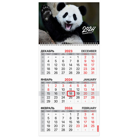 Календарь квартальный Brauberg Happy panda, 1 блок, 1 гребень, магнитный курсор, 2024